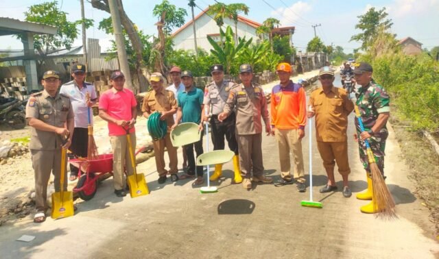 Mereka turun langsung melakukan kerja bakti membersihkan jalan poros di Dusun Glumo, Desa Jelakcatur, Kecamatan Kalitengah, Kabupaten Lamongan, Senin (6/4/2026).