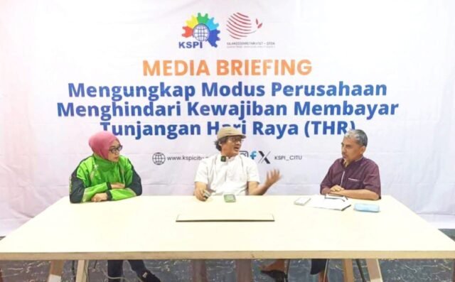 KSPI (Konfederasi Serikat Pekerja Indonesia) menggelar media briefing pada Sabtu (7/3/3/2026), yang menguliti berbagai modus operandi perusahaan untuk menghindari pembayaran THR.