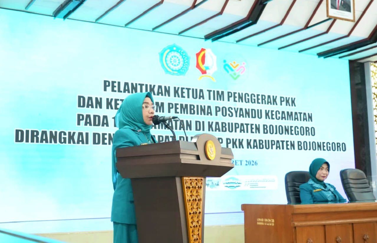 Ketua TP PKK Kabupaten Bojonegoro, Cantika Wahono, resmi melantik Ketua Tim PKK sekaligus Ketua Pembina Posyandu untuk 15 kecamatan di Kabupaten Bojonegoro.