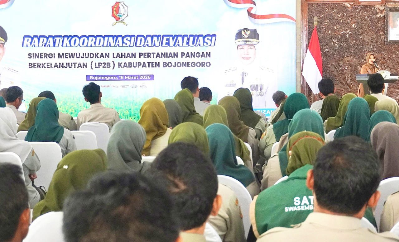 Komitmen tersebut disampaikan Wakil Bupati Bojonegoro Nurul Azizah saat rapat koordinasi evaluasi Dinas Ketahanan Pangan dan Pertanian Kabupaten Bojonegoro yang digelar di Pendopo Malowopati, Senin (16/3/2026).