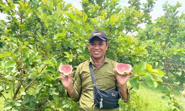 “Sekarang sudah panen, jadi sangat cocok untuk dikunjungi. Di kebun ini ada ratusan pohon jambu kristal merah yang bisa dipetik langsung oleh pengunjung,” ujarnya.