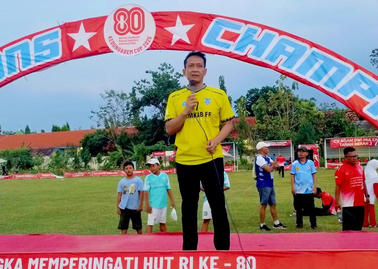Dalam sambutannya, ia memberikan apresiasi tinggi atas terselenggaranya Kedungadem Cup 2025 yang mampu menjadi wadah kebersamaan sekaligus ajang pencarian bibit atlet sepak bola berbakat dari desa.