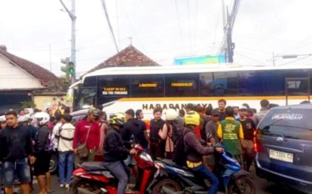 Bahkan, satu unit bus Harapan Jaya lain yang melintas dari arah berlawanan nyaris menjadi sasaran amukan warga yang emosi melihat kejadian tersebut.
