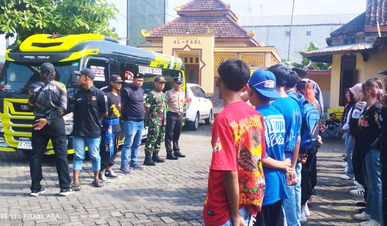 Personel gabungan dari Koramil 0812/06 Ngimbang dan Polsek Ngimbang turun langsung mengawal ratusan peserta yang berangkat menuju lokasi pengesahan di Madiun.