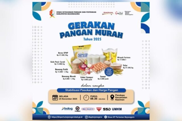 Program ini menjadi bagian dari langkah strategis Pemkab Bojonegoro dalam memperkuat stabilisasi harga kebutuhan pokok menjelang akhir tahun.