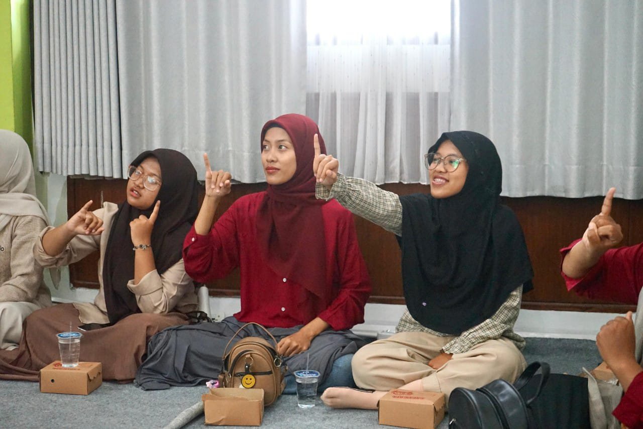 Sesi pertama dimulai dengan pengenalan huruf abjad Bisindo. Ugik memandu satu per satu gerakan dengan sabar, sementara peserta mengikuti dengan antusias. Beberapa peserta bahkan bersorak kecil ketika berhasil menirukan gerakan dengan tepat.