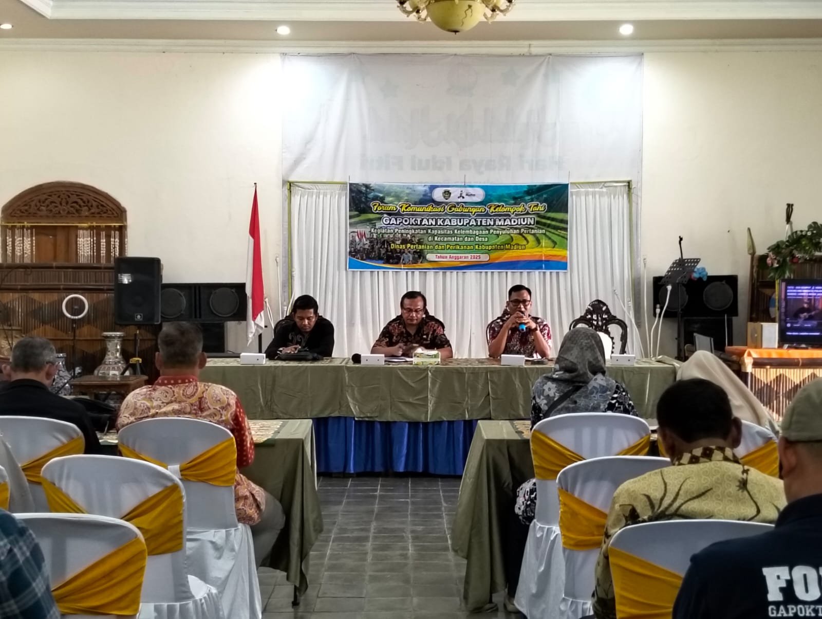 MADIUN, KLIKINDONESIA — Dinas Pertanian dan Perikanan (Distanikan) Kabupaten Madiun – Jawa Timur menggelar Forum Komunikasi Gabungan Kelompok Tani (Gapoktan) tahun 2025 sebagai langkah memperkuat kelembagaan petani di tingkat kecamatan dan desa. Kegiatan yang berlangsung di Gedung Srititi, Desa Wayut, Kamis (20/11/2025), menjadi ruang strategis bagi pemerintah dan Gapoktan untuk menyamakan persepsi terkait arah pembangunan pertanian tahun mendatang.