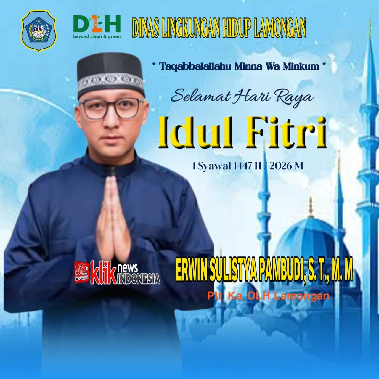 LAMONGAN, KLIKINDONESIA – Dinas Lingkungan Hidup (DLH) Lamongan mengucapkan selamat menunaikan ibadah puasa dan hari raya Idul Fitri, 1 Syawal 1447 H / Tahun 2026, mohon maaf lahir dan bathin
