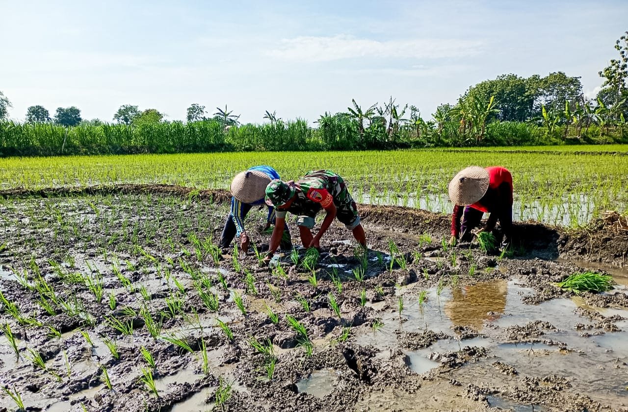 BOJONEGORO, KLIKINDONESIA – Dalam rangka mendukung dan mensukseskan program pemerintah dibidang Ketahanan Pangan (Hanpangan), jajaran Babinsa Koramil 09/Sumberrejo Kodim 0813 Bojonegoro – Jawa Timur, menanam padi jenis inpari 32 bersama Kelompok Tani Rukun Sejati Desa Kedungrejo Kecamatan Sumberrejo.