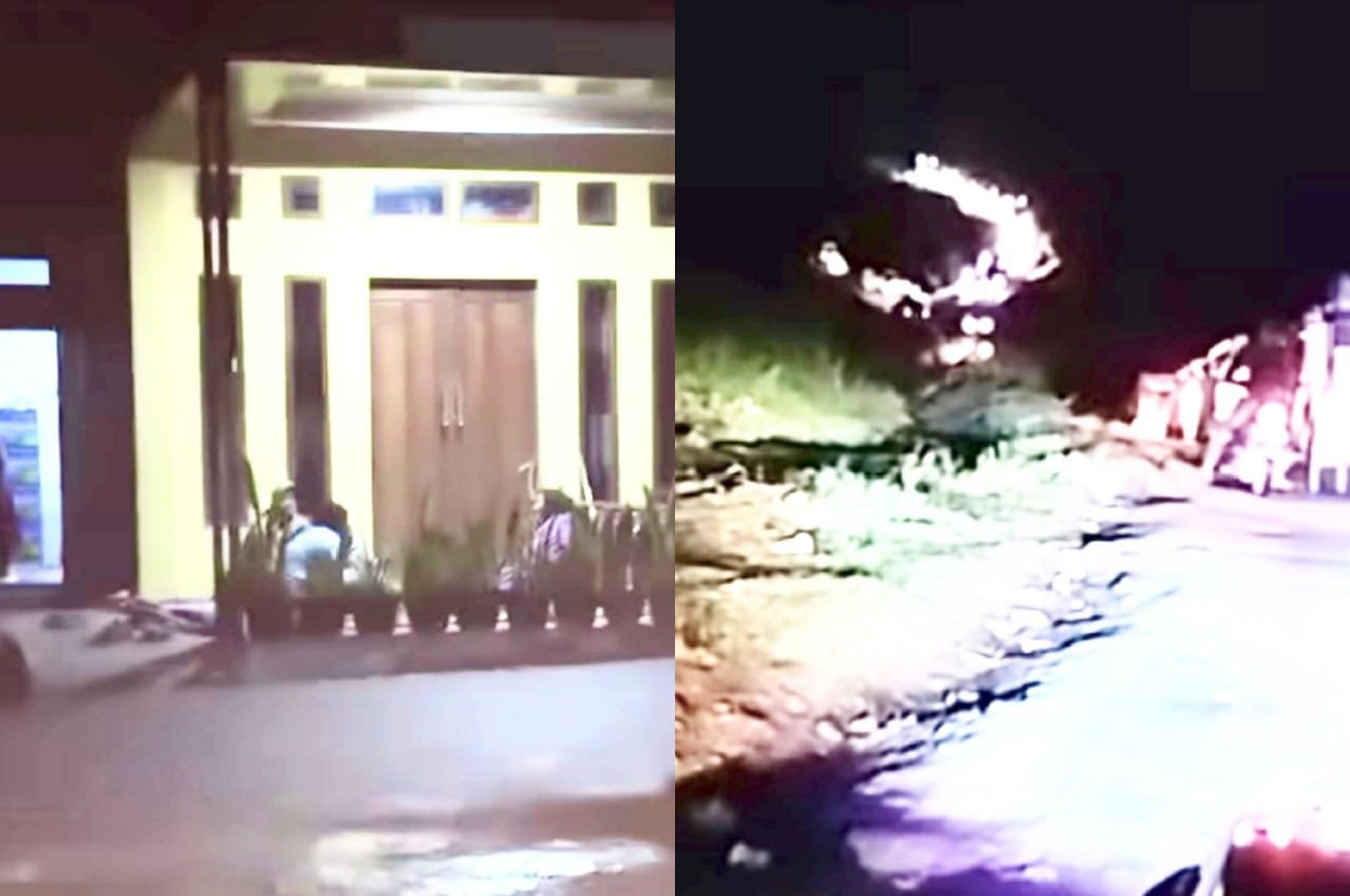 Sejumlah video yang beredar di media sosial memperlihatkan suasana malam yang mencekam, dengan warga berkumpul di luar rumah sambil membawa perlengkapan seadanya.