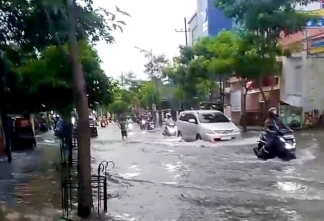 BOJONEGORO – Hujan deras yang mengguyur wilayah Kota Bojonegoro pada Senin sore (8/12/2025) kembali memunculkan persoalan serius di Jalan Panglima Sudirman (Pangsud).