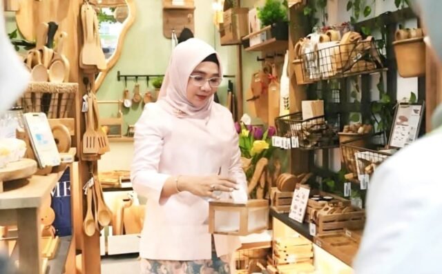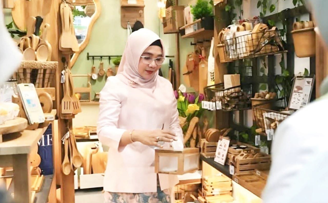 Momen pembukaan stan semakin bermakna dengan kehadiran Ketua Dekranasda Provinsi Jawa Timur, Arumi Bachsin.