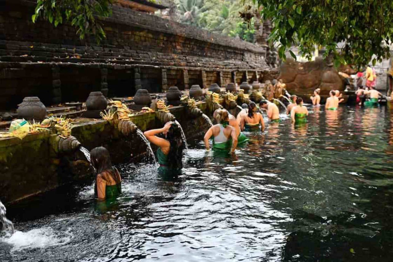 Tidak sedikit wisatawan datang jauh-jauh hanya untuk merasakan sensasi menenangkan dari guyuran air suci.