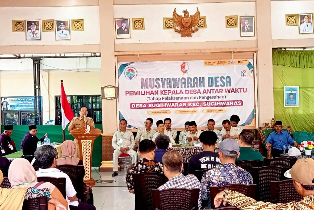 “Pada hari ini, Senin 15 Desember 2025, bertempat di Balai Desa Sugihwaras, panitia telah melaksanakan pemungutan suara Pemilihan Kepala Desa Antar Waktu. Setelah dilakukan penghitungan dan penelitian surat suara, diperoleh hasil sebagai berikut,” ujar Syaiful Aziz saat membacakan berita acara.