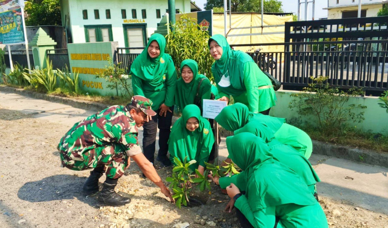 Jajaran TNI bersama Persit Kawedanan IV menggelar aksi penghijauan dengan menanam pohon sawo di Makoramil 0812/26 Pucuk, Selasa (21/4/2026).