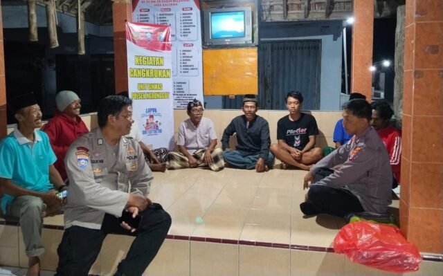Dalam kesempatan itu, AKP Darminto menggelar cangkrukan kamtibmas bersama perangkat desa dan warga, sekaligus menyerahkan sarana kontak berupa tikar untuk mendukung kenyamanan ronda malam.