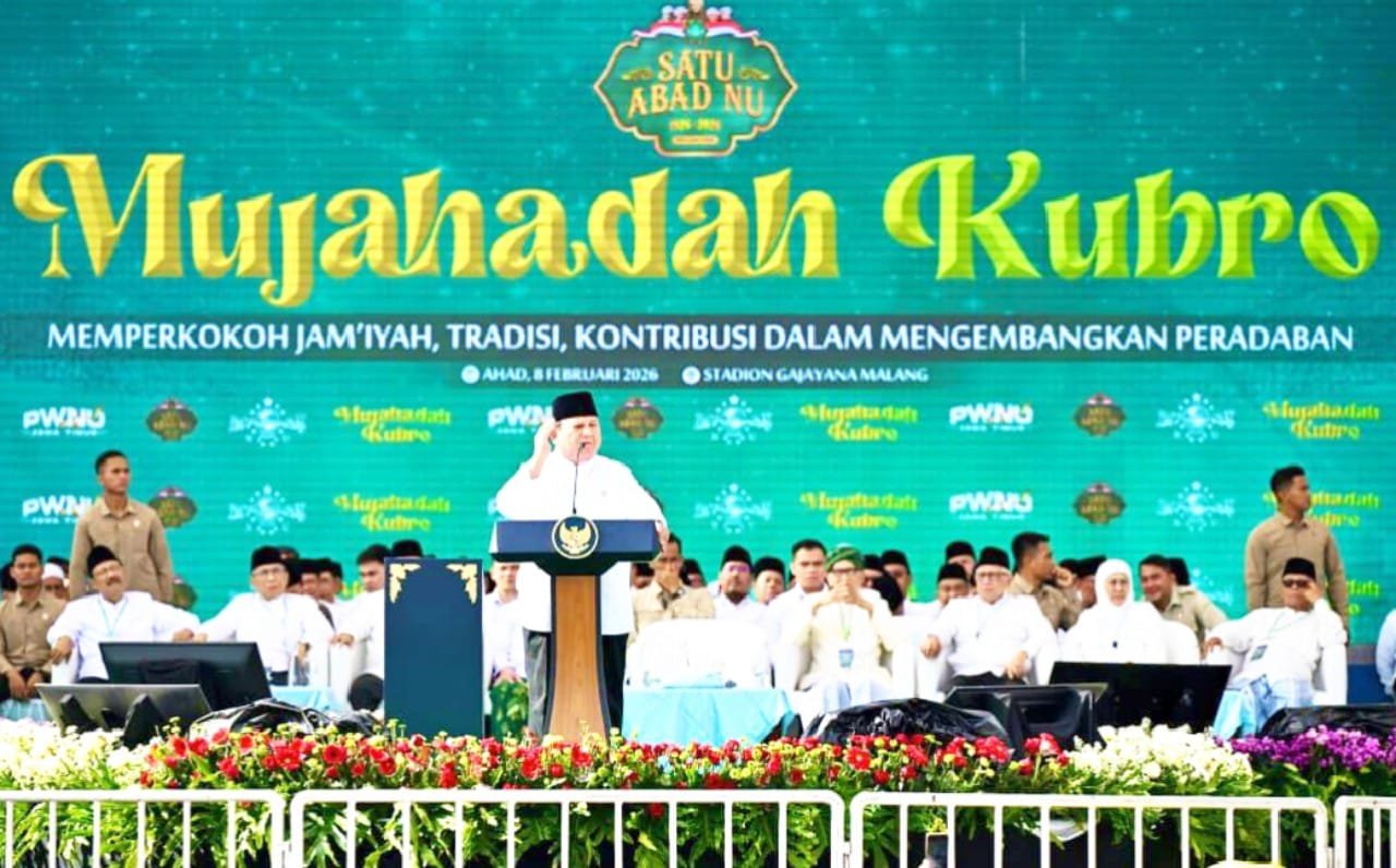MALANG – Presiden Republik Indonesia Prabowo Subianto menghadiri Mujahadah Kubro Satu Abad Nahdlatul Ulama (NU) yang digelar di Stadion Gajayana, Kota Malang, Jawa Timur, Minggu (8/2/2026).