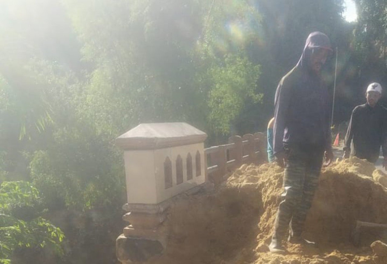 Lebih parah lagi, pekerjaan dilakukan di area lereng curam dan tanah timbunan, tapi para pekerja tidak memakai alat pelindung diri (APD) seperti helm, sepatu safety, atau rompi reflektor.