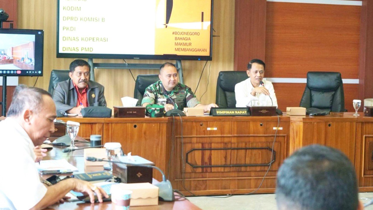 Rapat dipimpin Wakil Ketua Komisi B, Lasuri, dan dihadiri oleh anggota dewan, perwakilan OPD, jajaran Kodim 0813/Bojonegoro, serta pengurus koperasi dan kepala desa.