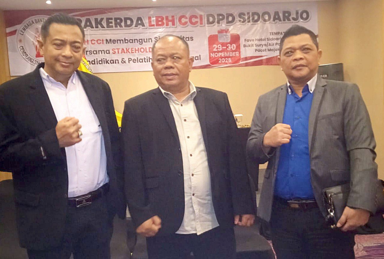 SIDOARJO — Lembaga Bantuan Hukum Cendrawasih Celebes Indonesia (LBH CCI) Dewan Pimpinan Daerah (DPD) Sidoarjo menggelar Rapat Kerja Daerah (Rakerda) pada Sabtu (29/11/2025) di Fave Hotel Sidoarjo. Mengusung tema “LBH CCI Membangun Sinergitas Bersama Stakeholder serta Pendidikan dan Pelatihan Paralegal”, acara ini menjadi momentum penting untuk memperkuat jaringan kerja sekaligus meningkatkan kualitas layanan bantuan hukum di Kabupaten Sidoarjo.