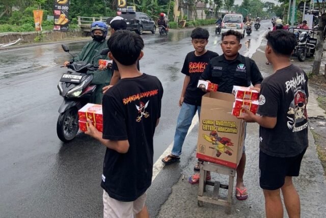 BOJONEGORO, KLIKINDONESIA – Dihari Jumat, biasanya disebut Jumat Berkah, karena disini banyak yang mengalap berkah dengan mencari amal kebaikan, seperti yang di lakukan oleh Personil Brandal Komprank (BRAKO) Nusantara Zona Dander, Kabupaten Bojonegoro – Jawa Timur, adakan kegiatan bagikan nasi ayam geprek gratis di lampu merah Pasar Ngumpakdalem – Dander, Pada Jumat (21/11/2025).