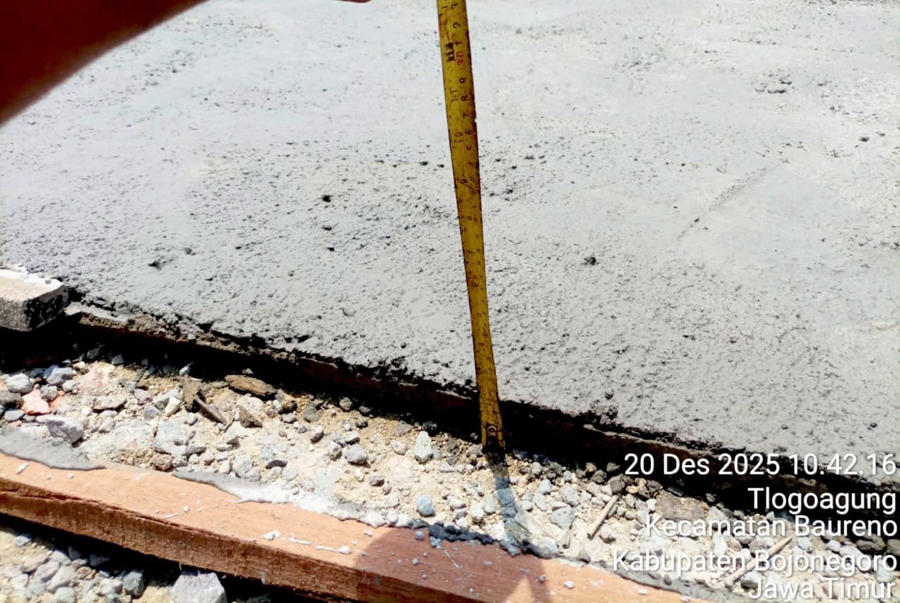 Pasalnya, proyek pembangunan jalan rijid beton di Desa Tlogoagung, Kecamatan Baureno, diduga dikerjakan secara asal-asalan dan jauh dari spesifikasi teknis yang seharusnya.