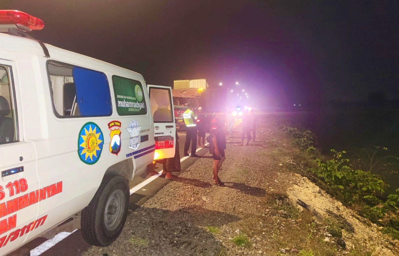 Insiden maut ini melibatkan dua kendaraan besar di Jalan Raya Lingkar Utara, tepatnya di Desa Glugu, Kecamatan Deket, Kabupaten Lamongan, pada Selasa dini hari (31/3/2026).