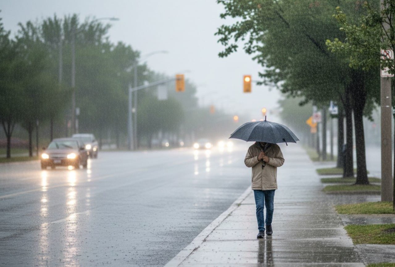 Kelembapan udara tercatat 87 persen. Pengguna jalan diimbau berhati-hati karena potensi jalan licin saat hujan.