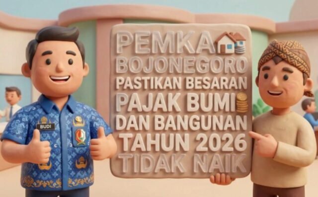 Pemerintah Kabupaten Bojonegoro resmi mengumumkan bahwa Pajak Bumi dan Bangunan Perdesaan dan Perkotaan (PBB-P2) tahun 2026 dipastikan tidak naik.