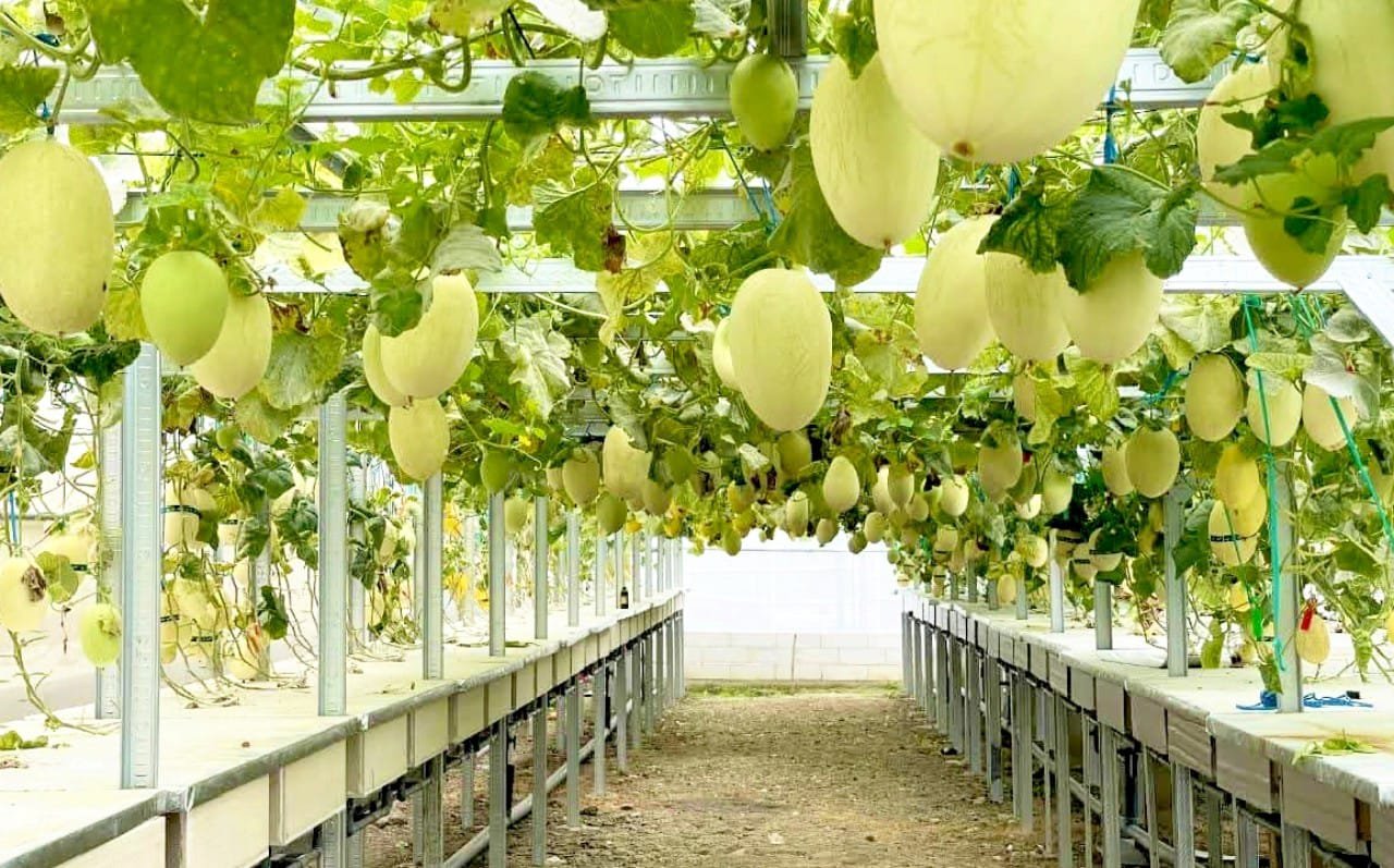 Setiap greenhouse diisi sekitar 148 pohon melon, dengan satu pohon dikembangkan menjadi 3–5 cabang.